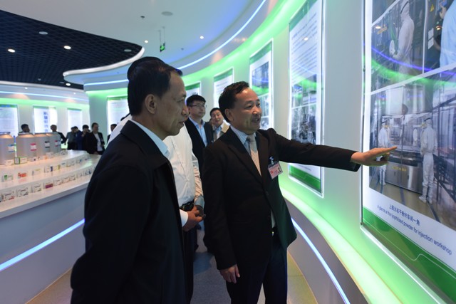 王書堅(jiān)一行參觀了羅欣集團(tuán)展廳,詳細(xì)了解了集團(tuán)的企業(yè)文化、發(fā)展歷程、科技創(chuàng)新體系以及取得的重大科研成果等情況,認(rèn)真聽取了集團(tuán)“十三五”發(fā)展規(guī)劃目標(biāo),并與董事長劉保起就醫(yī)藥企業(yè)及發(fā)展進(jìn)行了深入交流。
