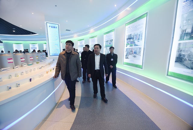 上圖為全市基層黨建觀摩會與會人員一行參觀公司展廳的情景