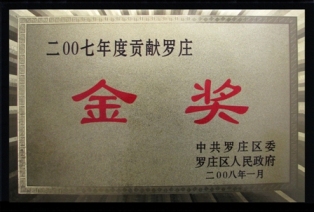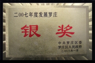 2008年1月,鑒于公司對(duì)地方經(jīng)濟(jì)發(fā)展做出突出貢獻(xiàn),山東羅欣藥業(yè)股份有限公司獲得由羅莊區(qū)委、羅莊區(qū)人民政府頒發(fā)的“2007年度貢獻(xiàn)羅莊金獎(jiǎng)”、“2007年度建設(shè)羅莊銀獎(jiǎng)”、“2007年度發(fā)展羅莊銀獎(jiǎng)”及“2007年度科學(xué)技術(shù)進(jìn)步銅獎(jiǎng)”等榮譽(yù)稱號(hào)。